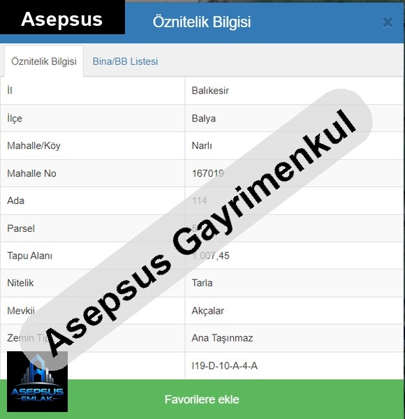 Asepsus Emlak'tan narlı mh. 'sinde satılık arsa