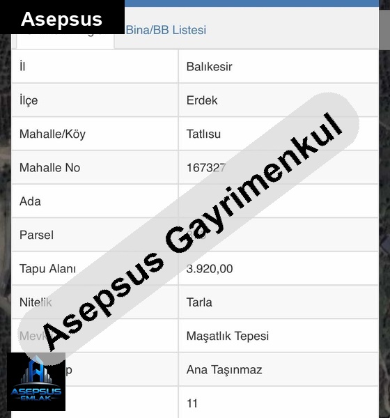 ASEPSUS EMLAK'TAN FIRSAT SATILIK-ARSA