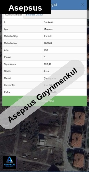 ASEPSUS EMLAK'TAN FIRSAT SATILIK-ARSA