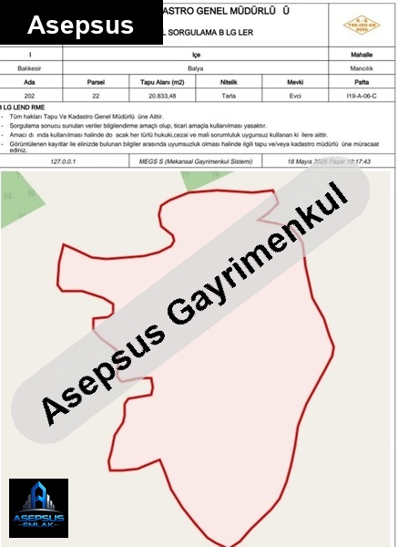 balıkesir / balya / mancılık mh. konumunda satilik-arsa satışta!