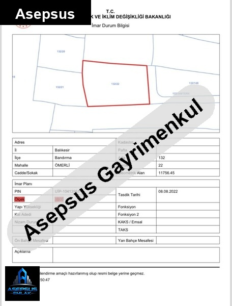 ASEPSUS EMLAK'TAN FIRSAT SATILIK-ARSA