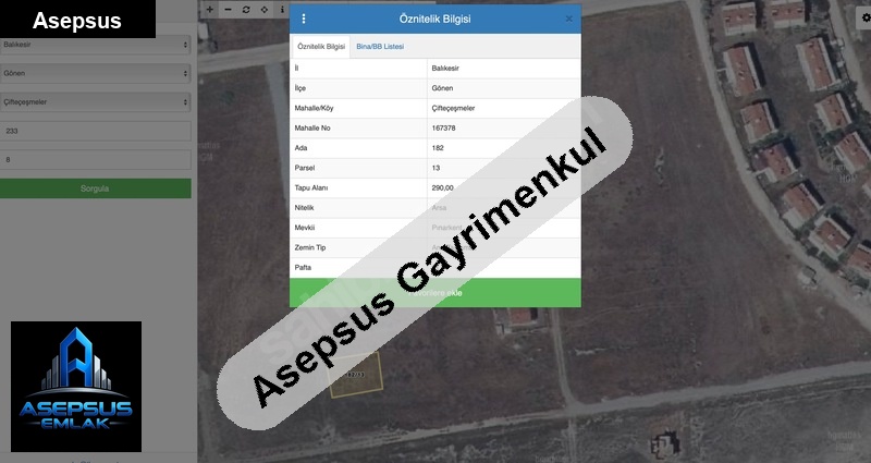 Asepsus Emlak'tan çifteçeşmeler mh. 'sinde satılık arsa