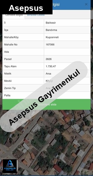 ASEPSUS EMLAK'TAN FIRSAT SATILIK-ARSA