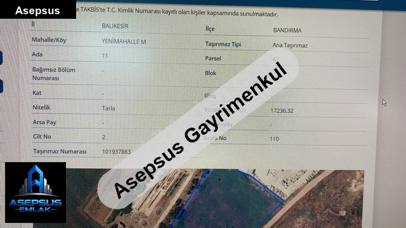 ASEPSUS EMLAK'TAN FIRSAT SATILIK-ARSA