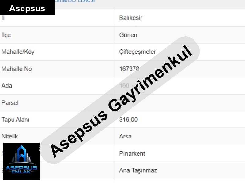 ASEPSUS EMLAK'TAN FIRSAT SATILIK-ARSA