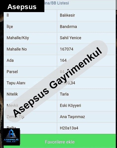 ASEPSUS EMLAK'TAN FIRSAT SATILIK-ARSA