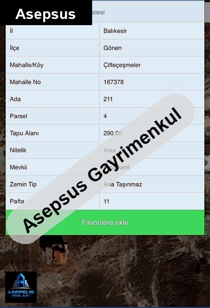 ASEPSUS EMLAK'TAN FIRSAT SATILIK-ARSA