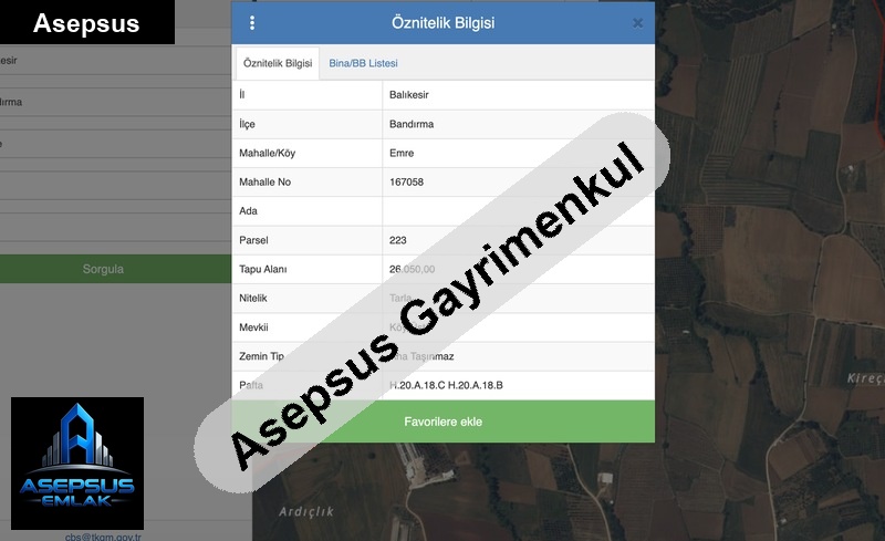 ASEPSUS EMLAK'TAN FIRSAT SATILIK-ARSA