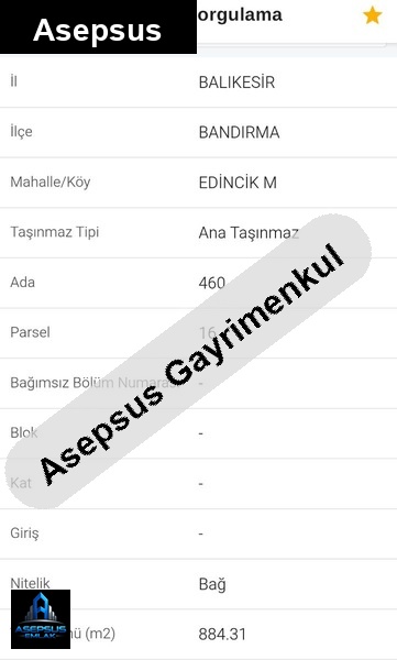 Asepsus Emlak'tan edincik mh. 'sinde satılık arsa