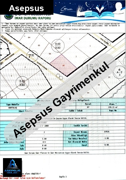 ASEPSUS EMLAK'TAN FIRSAT SATILIK-ARSA