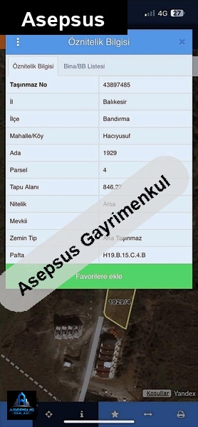 balıkesir / bandırma / hacı yusuf mh. konumunda satilik-arsa satışta!