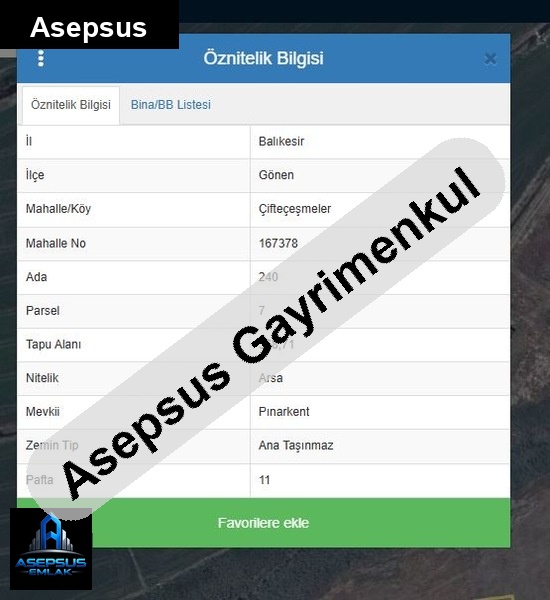 balıkesir / gönen / çifteçeşmeler mh. konumunda satilik-arsa satışta!