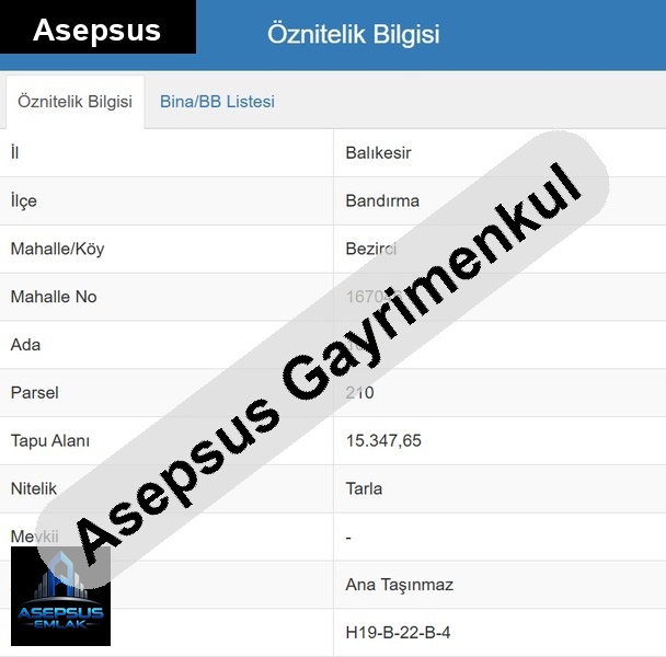 Asepsus Emlak'tan bezirci mh. 'sinde satılık arsa