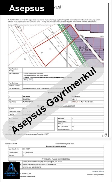ASEPSUS EMLAK'TAN FIRSAT SATILIK-ARSA
