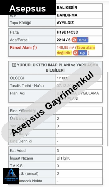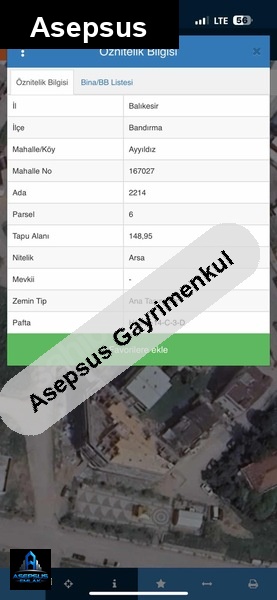 balıkesir / bandırma / ayyıldız mh. konumunda satilik-arsa satışta!