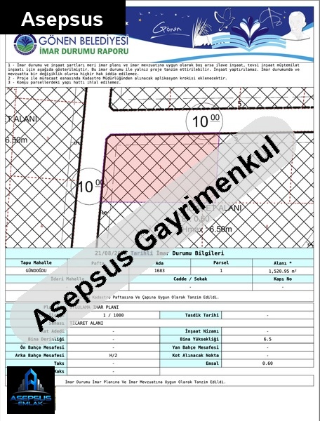 ASEPSUS EMLAK'TAN FIRSAT SATILIK-ARSA