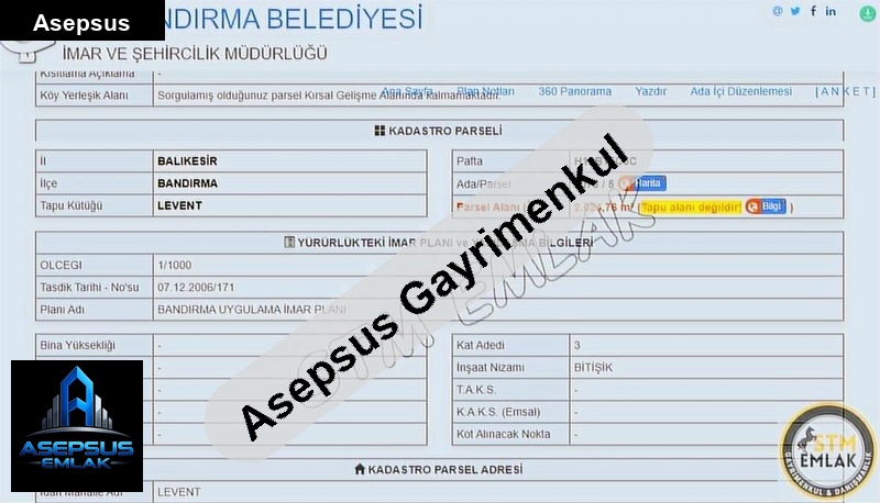 ASEPSUS EMLAK'TAN FIRSAT SATILIK-ARSA