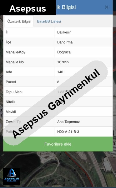 ASEPSUS EMLAK'TAN FIRSAT SATILIK-ARSA