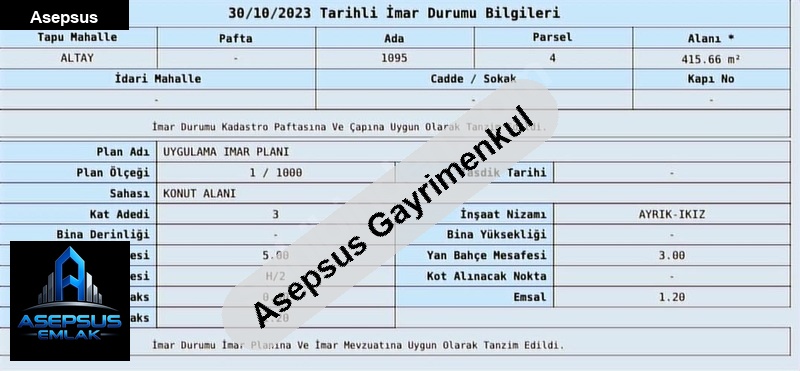 ASEPSUS EMLAK'TAN FIRSAT SATILIK-ARSA