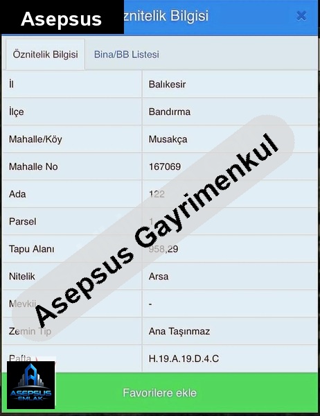 ASEPSUS EMLAK'TAN FIRSAT SATILIK-ARSA