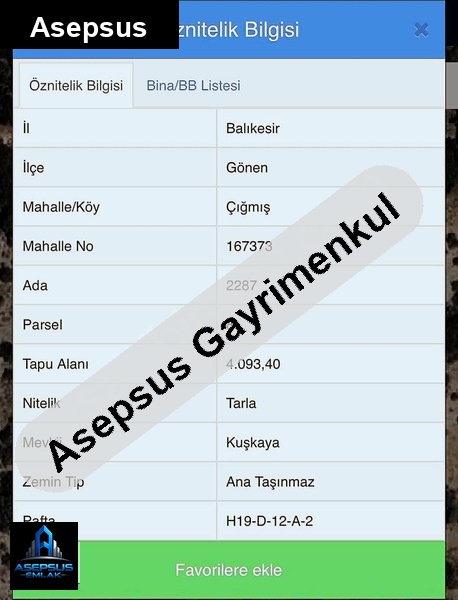 ASEPSUS EMLAK'TAN FIRSAT SATILIK-ARSA