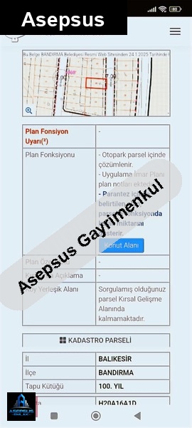 ASEPSUS EMLAK'TAN FIRSAT SATILIK-ARSA