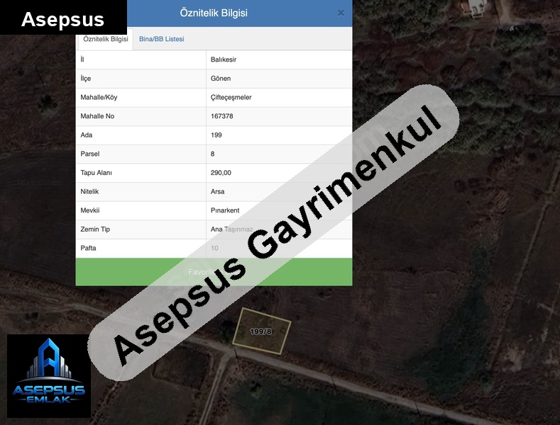 Asepsus Emlak'tan çifteçeşmeler mh. 'sinde satılık arsa
