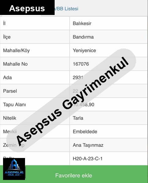 ASEPSUS EMLAK'TAN FIRSAT SATILIK-ARSA
