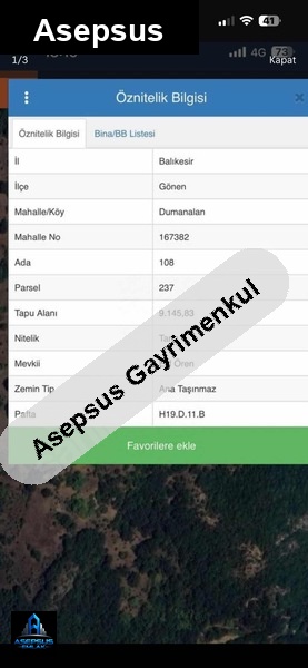 balıkesir / gönen / dumanalan mh. konumunda satilik-arsa satışta!