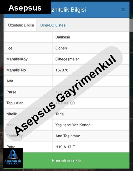 Asepsus Emlak'tan çifteçeşmeler mh. 'sinde satılık arsa