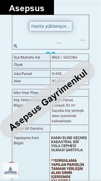 Asepsus Emlak'tan 3+1 sazoba köyü 'sinde satılık arsa