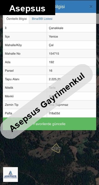 Asepsus Emlak'tan 3+1 çal köyü 'sinde satılık arsa