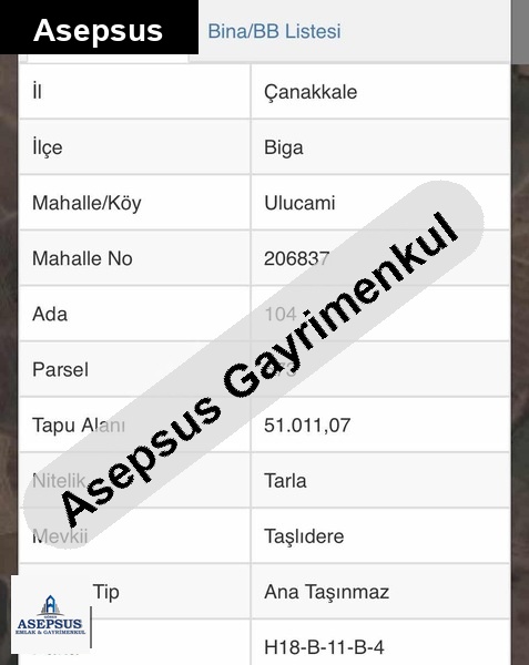 Asepsus Emlak'tan 3+1 karabiga bld. 'sinde satılık arsa