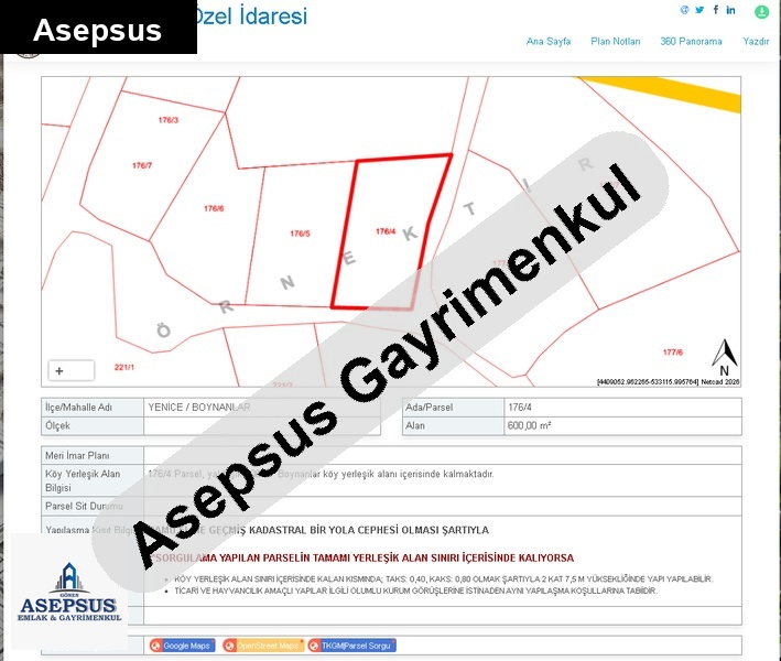 Asepsus Emlak'tan 3+1 boynanlar köyü 'sinde satılık arsa