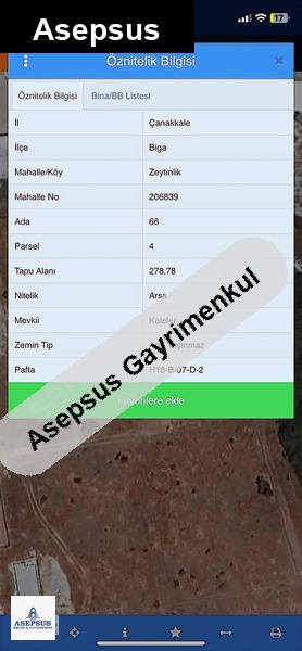 Asepsus Emlak'tan 3+1 karabiga bld. 'sinde satılık arsa