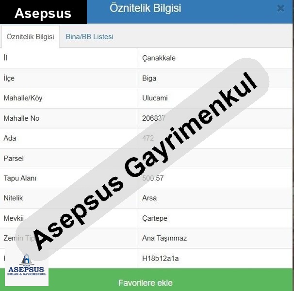Asepsus Emlak'tan 3+1 karabiga bld. 'sinde satılık arsa