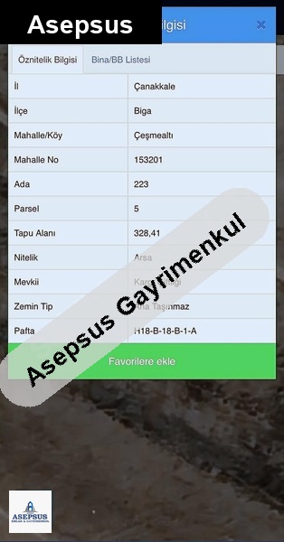 Asepsus Emlak'tan 3+1 çeşmealtı köyü 'sinde satılık arsa