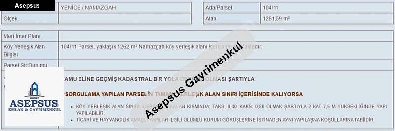 Asepsus Emlak'tan 3+1 namazgah köyü 'sinde satılık arsa