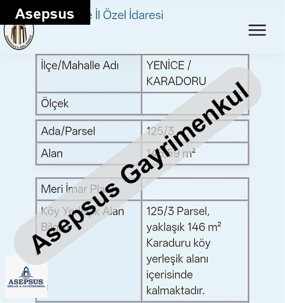 Asepsus Emlak'tan 3+1 karadoru köyü 'sinde satılık arsa