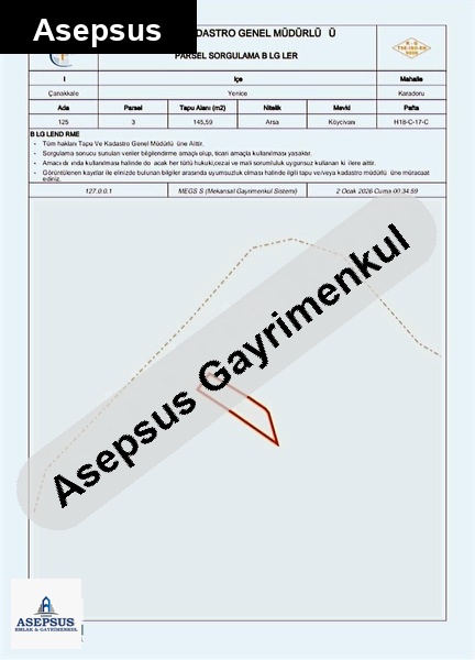 ASEPSUS EMLAK'TAN FIRSAT SATILIK-ARSA