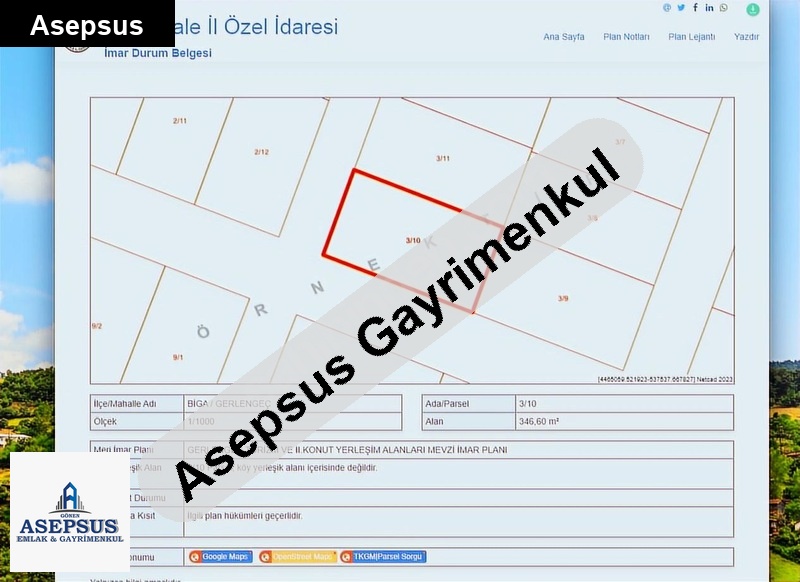 Asepsus Emlak'tan 3+1 gerlengeç köyü 'sinde satılık arsa