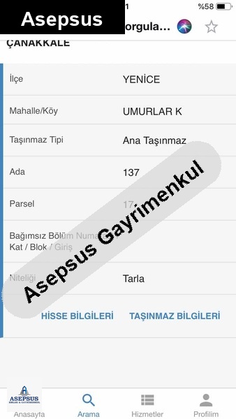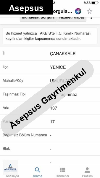 Asepsus Emlak'tan 3+1 umurlar köyü 'sinde satılık arsa