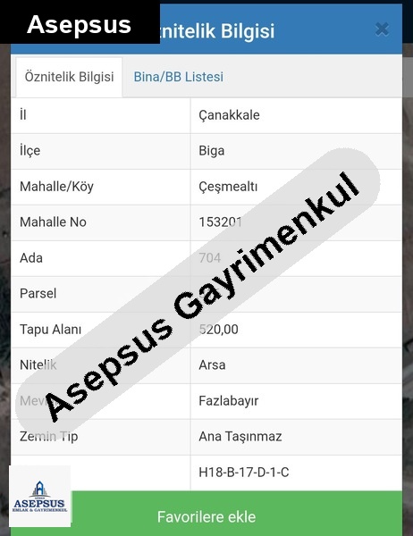 ASEPSUS EMLAK'TAN FIRSAT SATILIK-ARSA