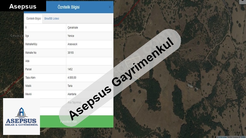 Asepsus Emlak'tan 3+1 araovacık köyü 'sinde satılık arsa