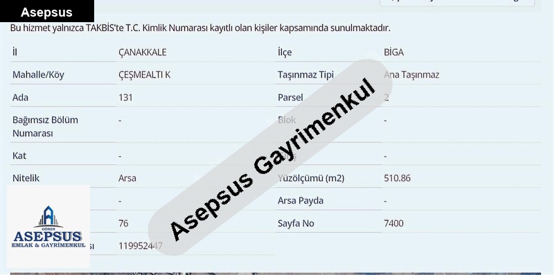ASEPSUS EMLAK'TAN FIRSAT SATILIK-ARSA