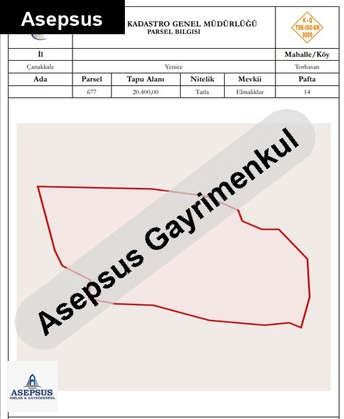 ASEPSUS EMLAK'TAN FIRSAT SATILIK-ARSA