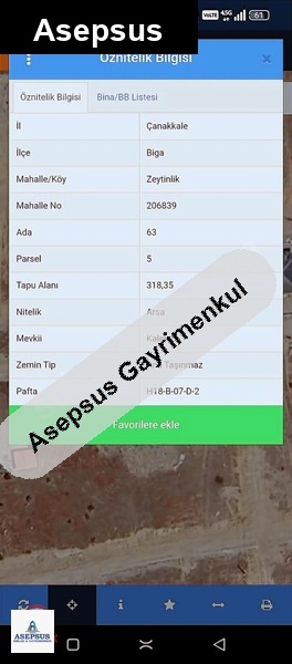 Asepsus Emlak'tan 3+1 karabiga bld. 'sinde satılık arsa