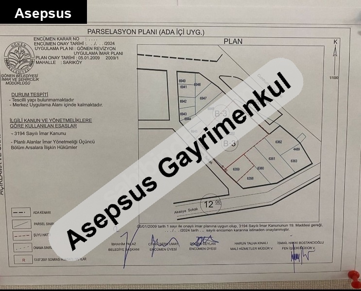 gönen'in gelecek vaat eden sarıköy beldesinde, ana yol cepheli, toplam 1507 m² arsanın ifraz sonucu oluşacak on parselden arka yol üzeri, krokide gösterilen 7 nolu 120 m2 lik parsel.
