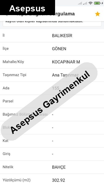 İmar Durumu: İmar iki parsel üstüne kadar gelmiş, imara girmesi yakın. İmar aldıktan sonra değerine değer katacak bir yatırım fırsatı.