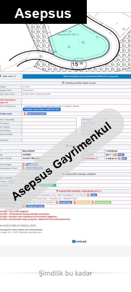 Karesi TOKİ’ye yakın, 17 kat imarlı, toplam 4928 m² arsa içinde 205 m²